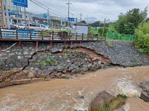 확인 결과 태풍이 몰고 온 폭우로 범서읍 천상천 제방이 20m가량 붕괴했고, 이 때문에 그 아래 묻힌 지름 500㎜짜리 배수관로가 파손된 것으로 나타났다.