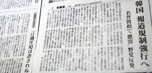 한국 언론중재법 개정에 우려 표명한 일본 신문 |