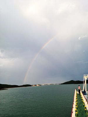 지난 24일 자은도와 암태를 잇는 은암대교에 무지개가 더 있다. (사진=독자 제공) |