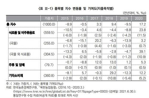 이는 한국농촌경제연구원 자료와 통일연구원이 수집한 비공개 자료를 바탕으로 시산한 결과다.