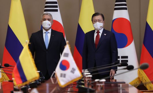 청와대에 따르면 문 대통령은 신종코로나바이러스감염증(코로나19)로 어려운 시기에 지리적으로 먼 데도 불구하고 한국만을 단독 방문한 콜롬비아 대통령의 협력 의지를 평가했다. 또 포스트 코로나 경제회복을 위해 양국이 디지털 전환, 친환경 성장 정책을 적극 추진해 나가고 있는 만큼, 양국 정부 기관 간, 민간 간 교류협력을 발전시켜 나갈 것을 제안했다. 이와함께 문 대통령은 콜롬비아 정부가 추진 중인 디지털, 친환경 인프라 프로젝트 사업에 경험과 기술력을 보유한 한국 기업들의 참여를 위한 두케 대통령의 관심과 지원을 당부했다.