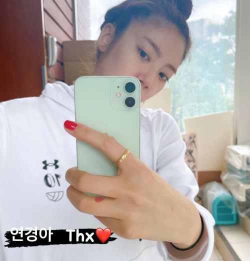 공개된 사진 속 손담비는 김연경에게 선물 받은 후드티를 입고 거울 셀카를 촬영 중인 모습이다. 손담비는 스포티한 후드티에 걸맞은 ‘똥머리’ 헤어스타일로 상큼한 비주얼을 뽐내고 있다.