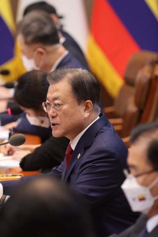 문재인 대통령이 25일 청와대에서 열린 한-콜롬비아 정상회담에서 인사말을 하고 있다.(사진=연합뉴스) |