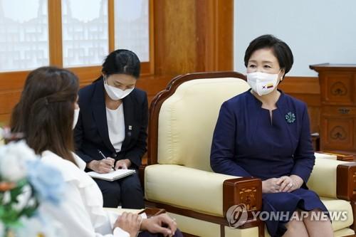 콜롬비아 영부인과 환담하는 김정숙 여사 |