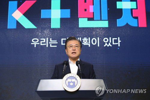 문 대통령은 이날 청와대에서 창업·벤처인들과 함께한 제2벤처붐의 성과와 미래 점검을 위한 'K+벤처'(K애드벤처) 행사에서 "앞으로도 정부가 힘껏 뒷받침하겠다"며 이같이 말했다.