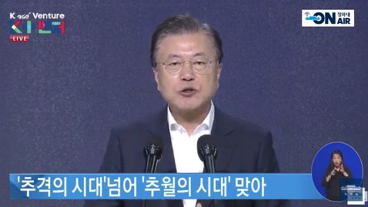 문 대통령은 또 "대한민국은 이제 '추격의 시대'를 넘어 '추월의 시대'를 맞고 있다. 4차 산업혁명과 포스트 코로나 시대를 주도하며, '추격형 경제'에서 '선도형 경제'로 나아가고 있다"라며 "그 중심에 벤처기업인들이 있다. 20년 전, 1세대 벤처기업인들이 IT 강국으로 가는 디딤돌을 놓았고, 이제는 2세대 후배들이 우리 경제의 새로운 도전을 이끌고 있다"고 말했다.