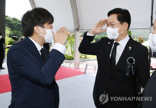 (서울=연합뉴스) 고상민 기자 = 더불어민주당 송영길 대표와 국민의힘 이준석 대표의 직무수행에 대한 평가가 엇갈린다는 여론조사 결과가 26일 나왔다.