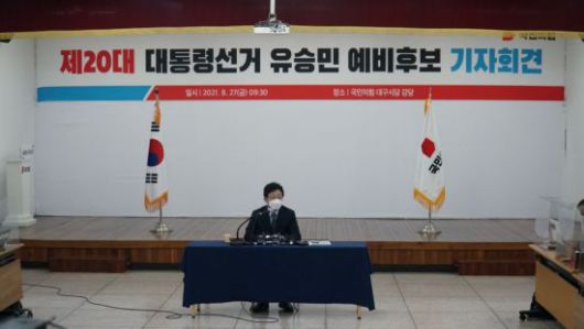 국민의힘 대선주자인 유승민 전 미래통합당 의원이 27일 국민의힘 대구시당에서 기자회견을 하고 있다. 유 전 의원은 "서운한 감정을 가지고 계셨다면 제가 부족했던 탓"이라며 "그 서운함을 뒤로 하고 대구의 아들 저 유승민의 손을 잡아주시기를 간곡히 호소드린다"고 말했다. / 사진=유승민 캠프 제공 |