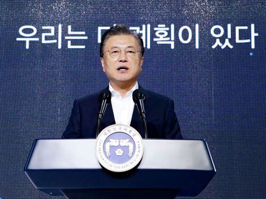 문재인 대통령이 26일 청와대에서 열린 제2벤처붐 성과보고회 'K+벤처'에서 발언하고 있다. /연합뉴스 |