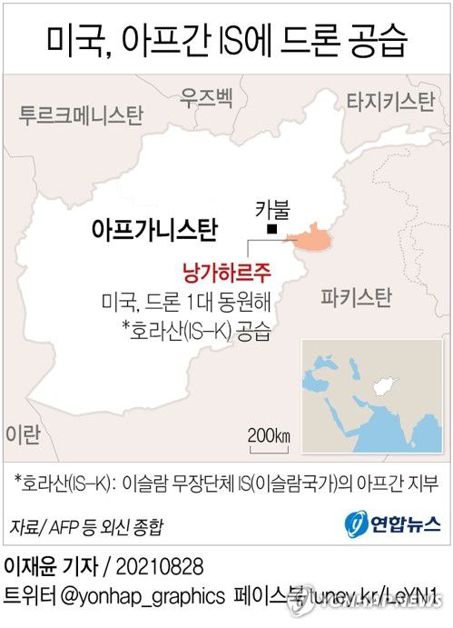 미국 국방부는 성명에서 이날 드론(무인 항공기)을 동원해 IS의 아프간 지부인 이슬람 국가 호라산(IS-K)을 공격했다고 밝혔다.