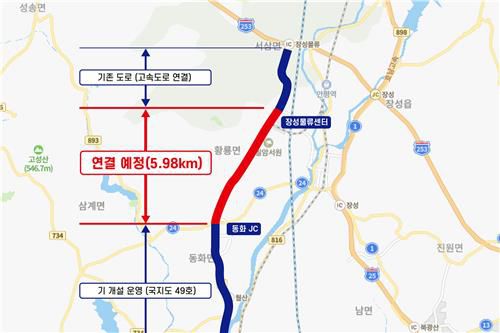 국가지원지방도 49호를 연장해 동화분기점과 장성물류센터를 직선으로 연결하면 이동 거리는 9.1㎞, 자동차 운행 시간은 20분가량 줄일 수 있다.