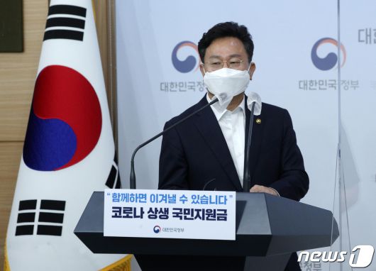 (서울=뉴스1) 송원영 기자 = 고규창 행정안전부 차관이 30일 서울 종로구 정부서울청사에서 '코로나 상생 국민지원금 세부시행계획'을 발표를 위해 입장하고 있다.2021.8.30/뉴스1sowon[© 뉴스1코리아(news1.kr), 무단 전재 및 재배포 금지]