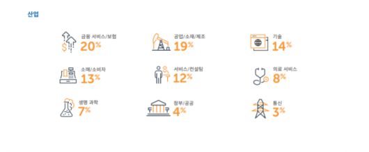 RPA 글로벌 기업 오토메이션애니웨어와 리서치 기업인 ETR이 최근 '글로벌 RPA 현황 보고서'를 발표했다. 글로벌 기업 IT 의사결정권자 263명을 대상으로한 설문조사 결과, 산업별 RPA 도입 현황[사진=오토메이션애니웨어] |