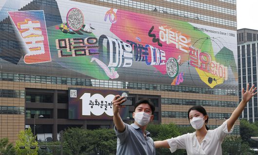 이번 글판은 BTS의 노래 ‘퍼미션 투 댄스’ 노랫말과 희망의 메시지를 그대로 살렸다. 코로나19 팬데믹으로 인한 억눌림과 고단함 속에서도 허락을 받을 필요 없이 자유로움을 느낄수 있는 것을 찾자는 의미다.