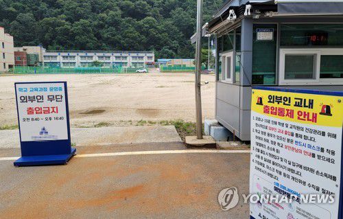 코로나19 집단 확진으로 출입 통제되는 학교 |