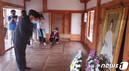 윤 전 총장은 "저 역시 오래 전 일이지만 여사님의 낮은 곳을 향한 어진 모습이 기억이 생생하고 오래오래 잊혀지지 않는다"며 "그래서 오늘 충북 첫 방문지로 옥천에 여사님의 생가를 찾아뵙게 된 것"이라고 설명했다.