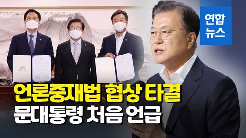 문재인 대통령은 이에 대해 "여야가 언론중재법 개정안에 대해 추가 검토를 위해 숙성의 시간을 갖기로 한 것을 환영한다"고 밝혔다고 박경미 청와대 대변인이 전했습니다.