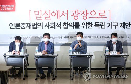 앞서 이들은 "언론 보도 피해 유형의 구체적인 분석과 언론중재법을 비롯한 민법·형법 등 규제·중재 체제의 한계, 언론노동자와 시민의 상호 이해를 도모할 중재 절차, 충분한 피해 배상 방안 등을 논의하자"며 '언론과 표현의 자유 위원회'를 사회적 합의기구로 제안한 바 있다.