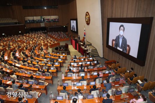 여야는 이날 국회의사당 본회의장에서 정기국회 개회식을 열고 정기국회 일정을 확정했다. 교섭단체 대표 연설은 오는 8일 윤호중 민주당 원내대표와 9일 김기현 국민의힘 원내대표 순으로 열린다. 대정부질문은 오는 13일부터 16일까지 진행된다. 13일 정치분야, 14일 외교·통일·안보분야, 15일 경제분야, 16일 교육·사회분야에 대해 각각 진행된다. 국정감사는 10월1일부터 21일까지 3주간 실시된다. 내년도 예산안에 대한 정부의 시정연설은 10월25일 진행된다.