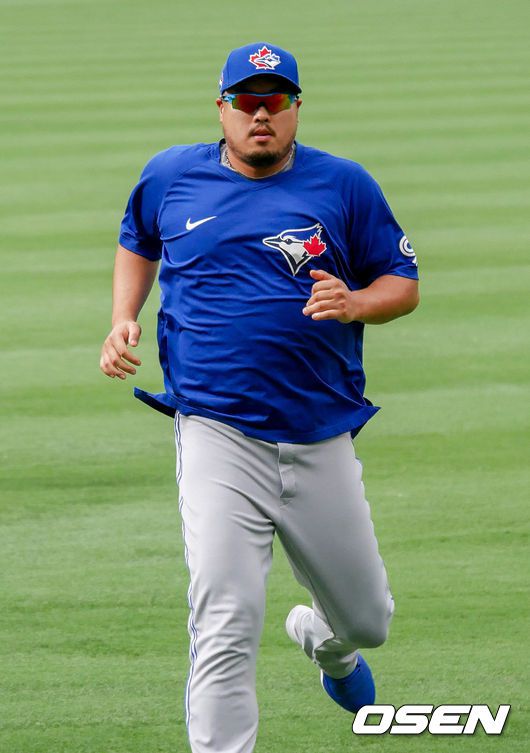 [OSEN=애너하임, 이사부 통신원] 토론토 블루제이스의 류현진이 12일(한국시간) 에인절 스타디움에서 벌어진 LA 에인절스와의 경기에 앞서 러닝 훈련을 하고 있다. 2021.08.12 / lsboo@osen.co.kr |