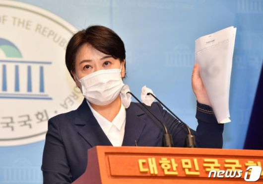 의원직과 대선 예비후보에서 사퇴를 선언한 윤희숙 국민의힘 의원이 27일 오후 서울 여의도 국회 소통관에서 최근 윤 의원에 대한 발언들에 대한 의견을 밝히는 기자회견을 갖고 있다. /사진=뉴스1 |