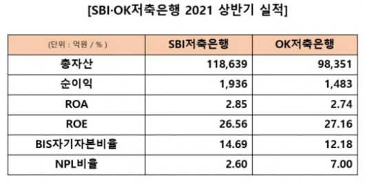 SBI·OK저축은행 2021 상반기 실적. /자료=본사 |