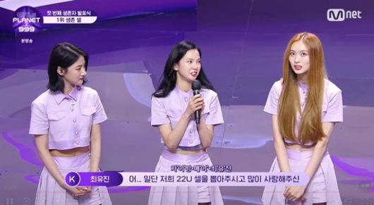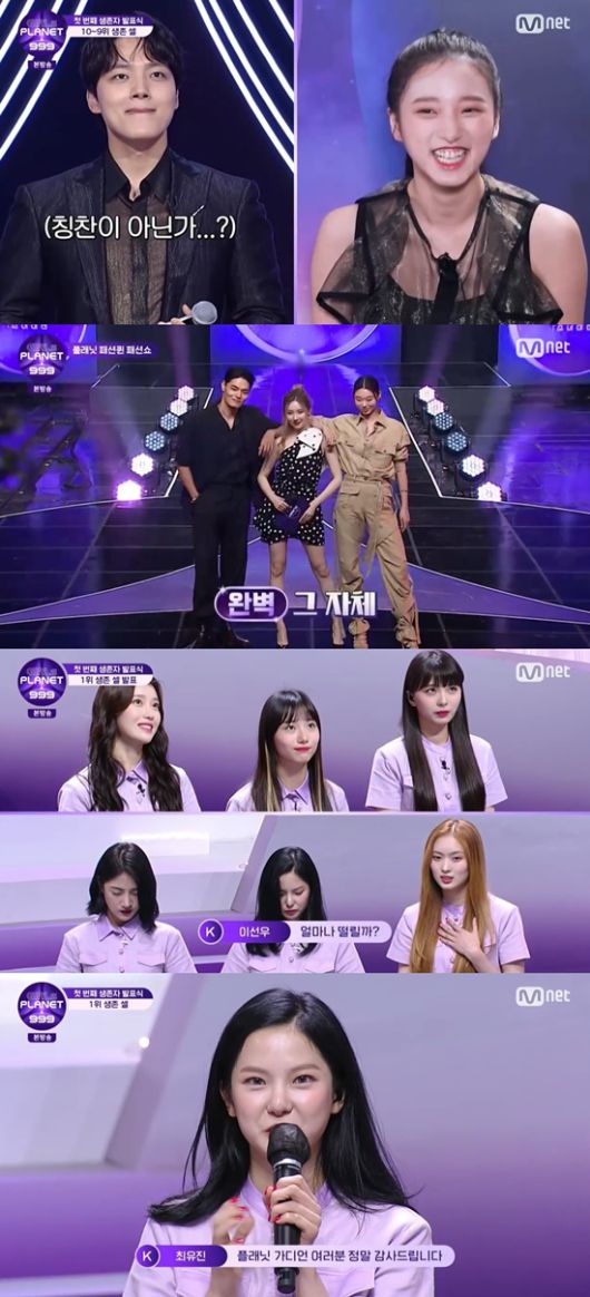 (엑스포츠뉴스 이서은 인턴기자) '걸스플래닛'의 최유진이 첫 번째 생존자 발표식에서 1위를 차지했다. 2,3위는 션샤오팅, 에자키 히카루였다.