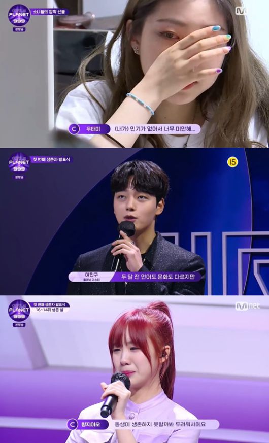 3일 방송된 Mnet '걸스플래닛 999 : 소녀대전'(이하 '걸스플래닛')에는 첫 번째 생존자와 탈락자 발표식이 예고됐다. 함께 미션을 수행하고 한 셀로 엮였던 소녀들은 첫 탈락자 발표를 앞두고 서로에게 편지를 써 주며 우애를 드러냈다. 특히 서로 국적이 다름에도 한국어로 대화하며 함께 눈물을 흘렸다.