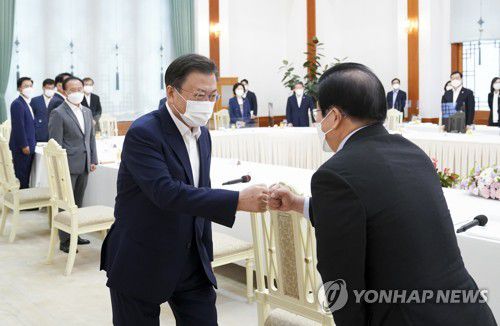 (서울=연합뉴스) 조민정 설승은 이동환 기자 = 문재인 대통령과 박병석 국회의장, 김상희·정진석 부의장, 상임위원장들이 3일 청와대에서 약 100분간 오찬 간담회를 하며 "협치하는 국회를 만들자"고 한목소리를 냈다.