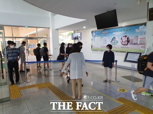 학생들은 교사들의 안내에 따라 본관 1층 발열체크 장소에서 체온을 측정한 뒤 손을 소독하고 학교 안으로 들어섰다. 교사들도 방역에 민감하게 대응하고 있는 모습을 보였다.