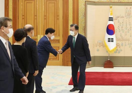 문 대통령은 임명장 수여식 이후 기념촬영을 진행했다. 문 대통령은 환담 장소인 인왕실로 이동해 비공개 환담을 이어갔다.