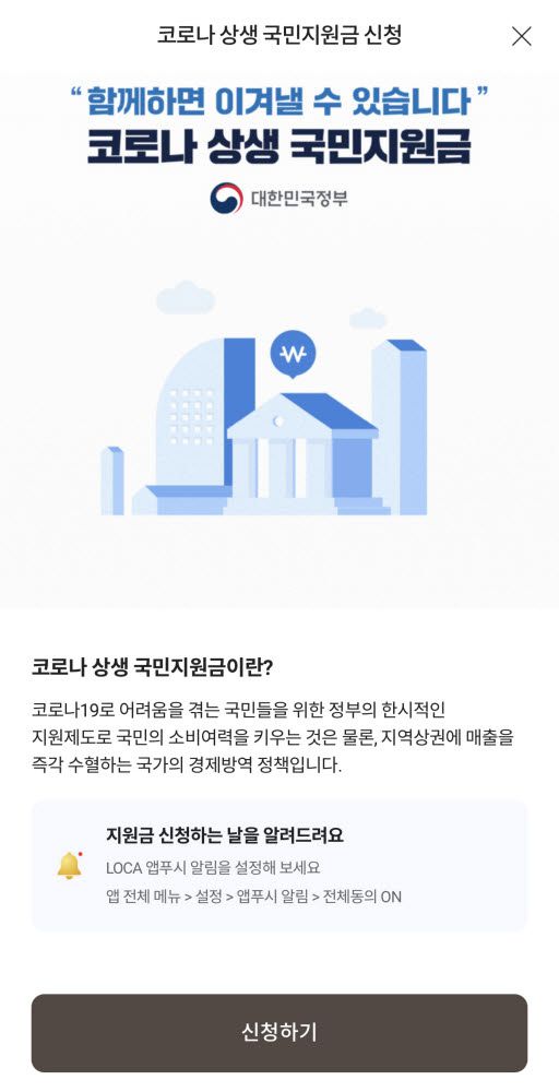 코로나 상생 국민지원금(국민지원금) 신청이 6일 각 카드사 홈페이지와 모바일 애플리케이션(앱) 등에서 시작했다. 전 국민 10명 중 8명이 대상인 만큼 초기 이용자가 대거 몰리면서 카드사 모바일 앱이 한때 지연되는 등 오류가 발생했지만 오전 내에 복구되면서 혼란은 피할 수 있었다.