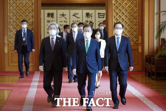 [더팩트ㅣ허주열 기자] 문재인 대통령이 6일 이석현 민주평화통일자문회의 수석부의장, 송두환 국가인권위원장, 고승범 금융위원장, 박종수 북방경제협력위원장에게 임명장을 수여 하고 환담을 나눴다.