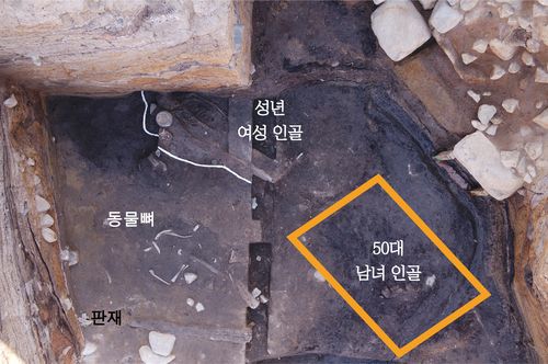 아울러 연구소는 인골 2구 조사 전해인 2016년 같은 장소에서 찾은 5세 전후 유아 인골도 제물로 묻혔을 확률이 높다고 봤다. 이를 통해 제물이 된 사람의 연령과 성별, 체격이 다양했음이 드러났다고 덧붙였다.