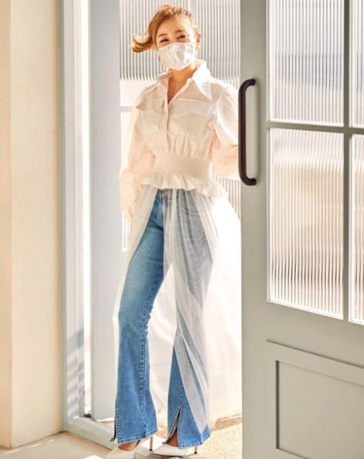 공개된 사진 속에는 레이스가 달린 상의에 나팔 청바지를 매치한 송가인이 포즈를 취하고 있는 모습이 담겼다. 특히 햇살을 받은 그의 아름다운 눈웃음이 미소를 자아낸다.