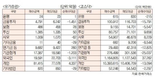 [표]유가증권 코스닥 투자주체별 매매동향(9월 7일-최종치)