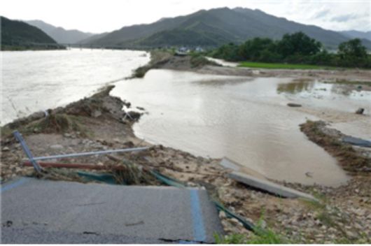 홍수로 강둑이 터져 주위로 하천이 범람한 모습끝없이 반복되는 하천붕괴와 사후약방문격 보강공사가 악순환 처럼 되풀이되는 게 우리나라 하천관리의 현실이기도 하다. 이런 악순환의 고리를 끊고 수해를 원천적으로 줄일 수 있는 제방공법이 한국건설기술연구원(원장 김병석)에 의해 개발돼 하천관리분야에서 커다란 기대를 모으고 있다.