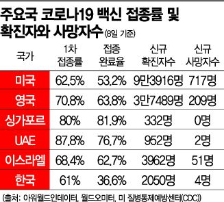 앞서 위드 코로나에 돌입한 싱가포르·이스라엘 등에서 유행이 급속하게 재확산하자 우리 정부가 고심에 빠졌다. 방역당국은 다음 달 말 위드 코로나에 들어가는 방안을 검토하고 있다. 그러나 접종 완료율이 아직 30%대로 80%대를 기록 중인 싱가포르보다 현저히 낮은 데다 전파력이 센 델타 변이 확산으로 언제든 확진자가 폭증할 수 있는 상황이다.