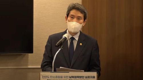이 장관은 이날 한국환경연구원과 통일부 국립통일교육원 주최로 중구 한국프레스센터에서 열린 '한반도 탄소중립을 위한 남북협력방안 심포지엄'의 축사에서 "남과 북은 떼려야 뗄 수 없는 하나의 기후·환경·생태권의 공동 생활권으로 연결돼 있다"며 이같이 말했다.
