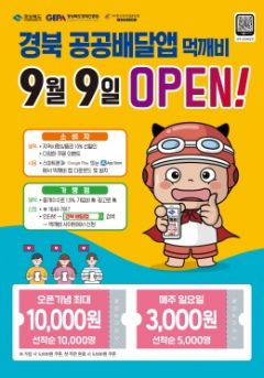 경북 공공배달앱 ‘먹깨비’가 9일, 포항, 김천, 안동, 구미, 영주, 영천, 상주, 문경, 경산, 칠곡, 예천 등 11개 시군에서 정식 오픈한다.