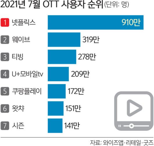 현재 한국 OTT시장은 이미 넷플릭스가 900만명이 넘는 사용자를 확보하며 독주하고 있다. 넷플릭스 독주로 점유율 확대에 어려움을 겪고 있는 국내 토종 OTT는 또다시 거대 OTT의 등장에 긴장하고 있다. 국내 OTT 기업의 한 임원은 “OTT 시장이 점차 오리지널 콘텐츠 경쟁으로 치닫고 있는 상황에서 자본력과 자체 콘텐츠를 확보한 디즈니플러스의 국내 상륙은 넷플릭스와는 또 다른 위협이 될 것”이라고 설명했다.