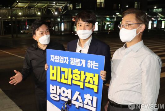 [서울=뉴스핌] 김학선 기자 = 이준석 국민의힘 대표와 원희룡, 최재형 대선 예비후보가 9일 새벽 서울 영등포구 여의대로에서 정부의 사회적 거리두기 재연장 조치에 반발해 전국 동시 야간 차량시위를 하는 자영업자들을 응원하고 있다. 2021.09.09 yooksa@newspim.com 저작권자(c) 글로벌리더의 지름길 종합뉴스통신사 뉴스핌(Newspim), 무단 전재-재배포 금지