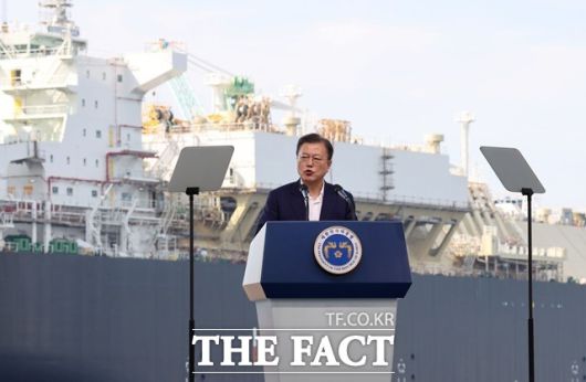 [더팩트ㅣ허주열 기자] 문재인 대통령이 9일 "탄소중립과 4차 산업혁명에서 비롯된 친환경화, 스마트화 물결은 조선·해운 산업에서도 거스를 수 없는 흐름"이라며 "우기가 강점을 가진 분야로, 하늘이 우리에게 준 기회라고 생각한다"고 말했다.
