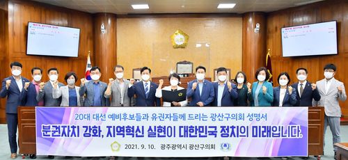 (광주=연합뉴스) 정회성 기자 = 광주 광산구의회는 '20대 대선 예비후보께 드리는 성명'을 10일 발표했다.