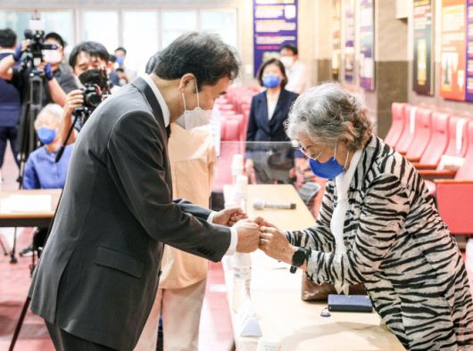 이낙연 더불어민주당 대선 경선 후보가 11일 대구 동구 광복회 대구지부에서 열린 독립유공자 후손 간담회에 참석, 인사하고 있다.(사진=이낙연 캠프 제공) |