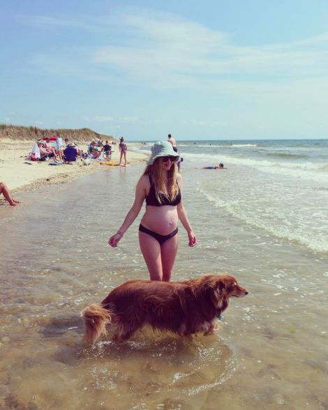 함께 올린 사진 속에는 해변에서 반려견과 함께 즐거운 시간을 보내고 있는 사이프리드의 모습이 담겨져 있다. 만삭에 비키니 차림. D라인이 아름답다.