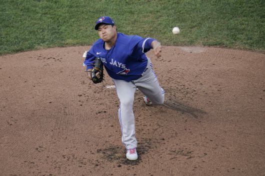 토론토 블루제이스 류현진이 12일(한국 시간) 볼티모어 오리올스를 상대로 투구하고 있다. 볼티모어(매릴랜드주)|AP연합뉴스 |