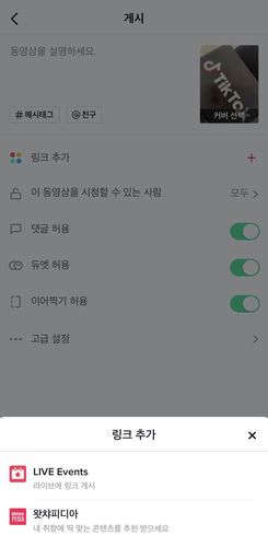 사용자가 틱톡 영상을 게시하기 전 '링크 추가'를 누르면 바로 '왓챠피디아'를 확인할 수 있다.