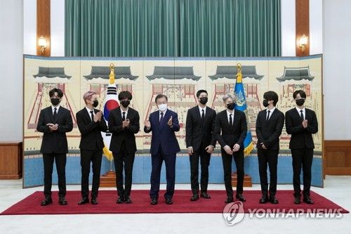 문재인 대통령은 오늘(14일) 오전 청와대에서 방탄소년단(BTS)에게 '미래세대와 문화를 위한 대통령 특별사절' 임명장을 수여했습니다. BTS는 다음주 미국 뉴욕에서 열리는 76차 유엔총회에 참석해 지속가능발전목표(SDG) 특별행사에서 연설할 예정입니다.