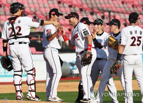 더블헤더 1차전 승리한 KT |